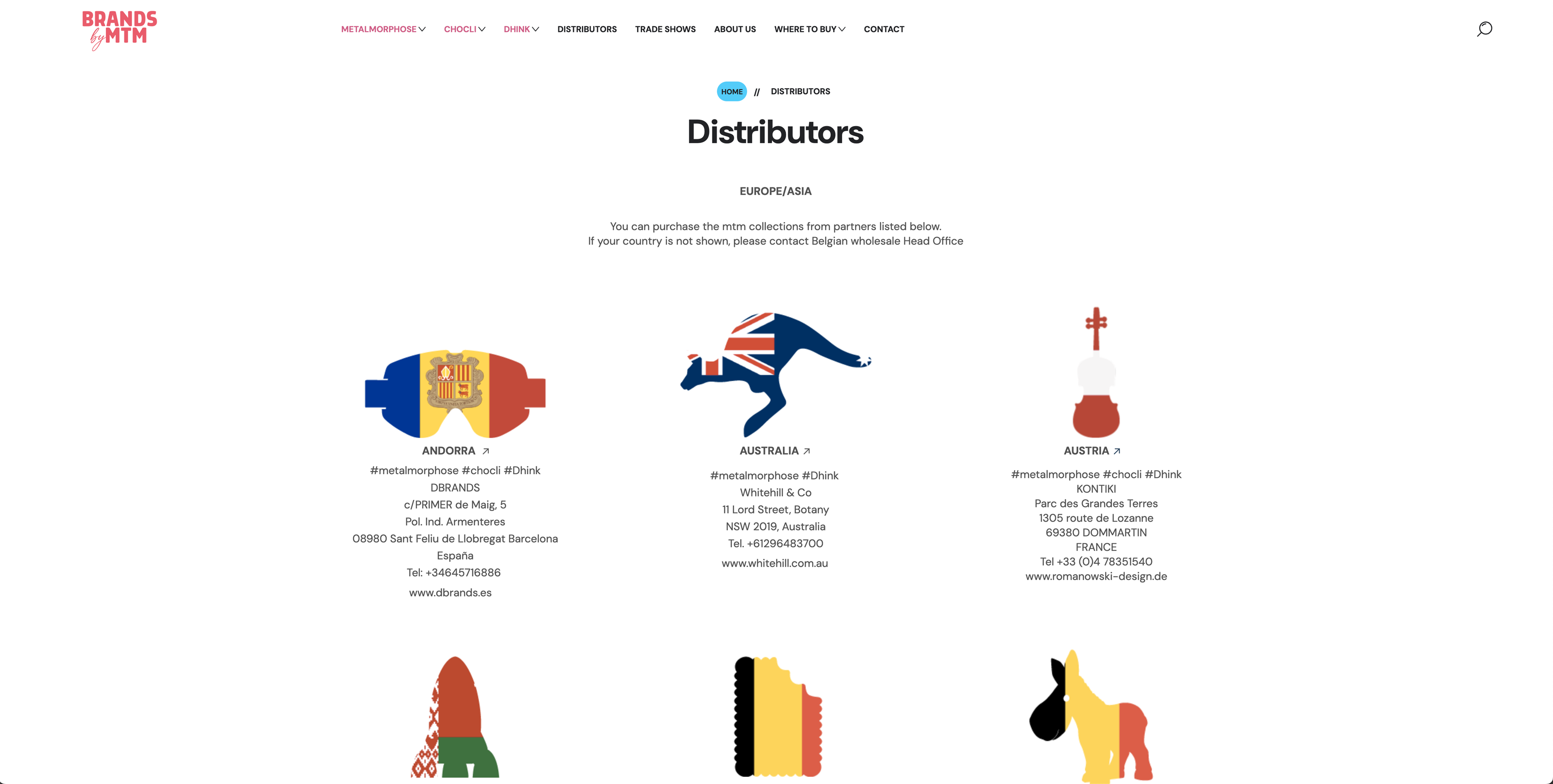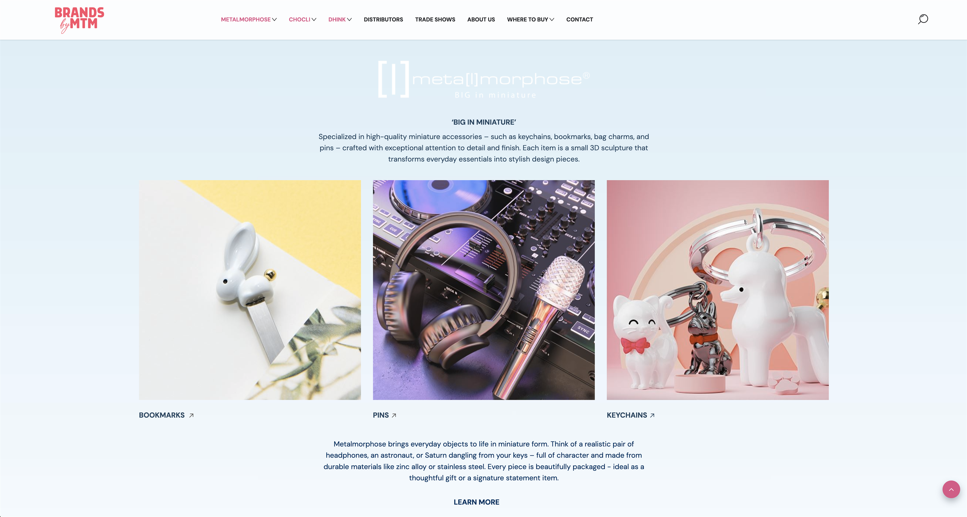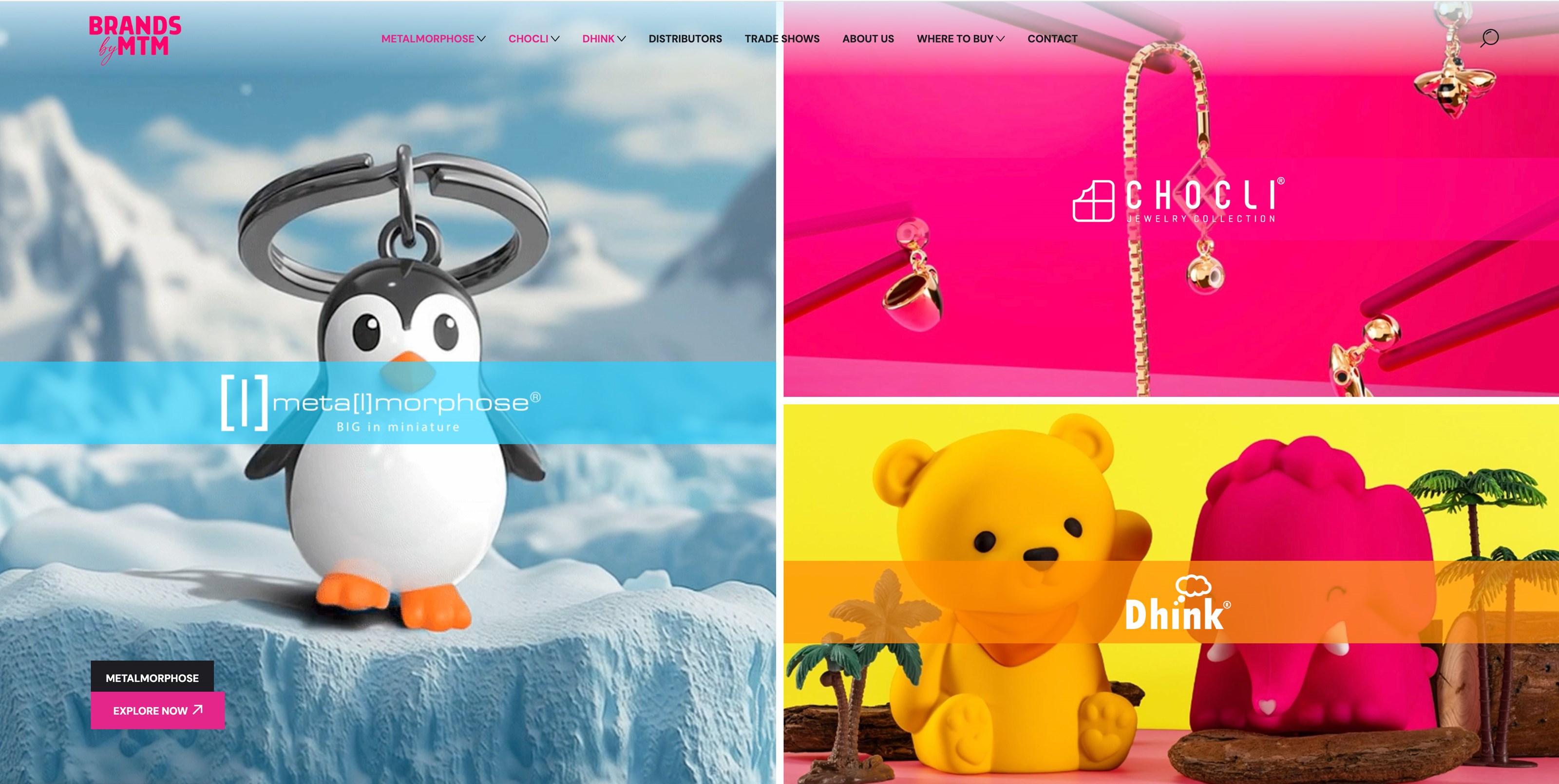 Les différentes collections – telles que Metalmorphose, Chocli et Dhink – sont clairement structurées et faciles à explorer. Les visiteurs disposent ainsi d’une vue claire de l’offre. - Design responsive
